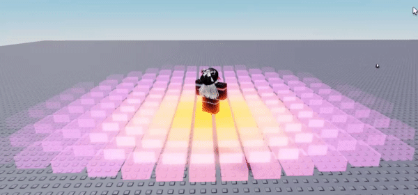 Grid of parts that change color, transparency & position based on their distance from the player.